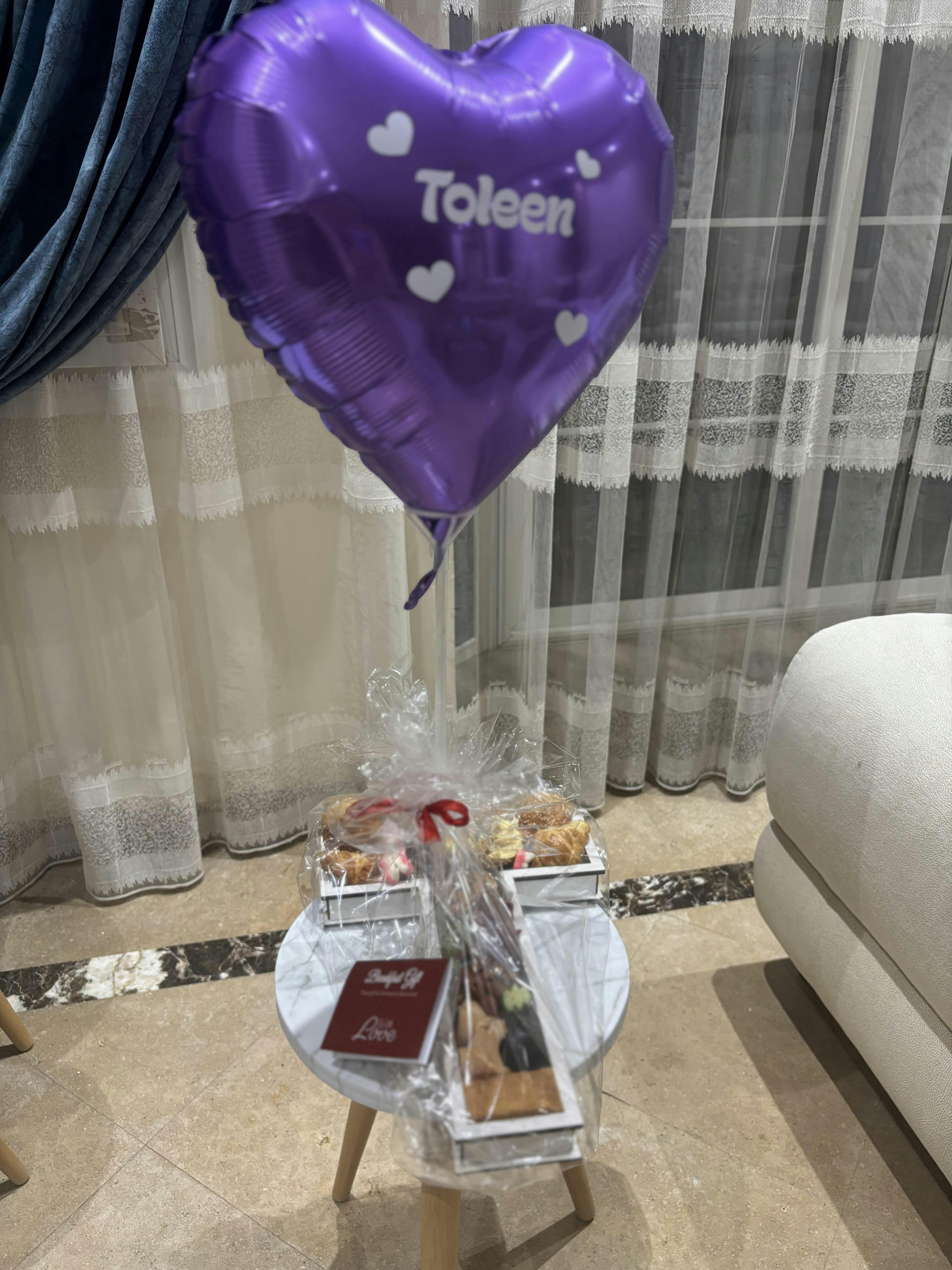 Delicious and fresh candies in an elegant wrapping with a colourful balloon. Delivered on time. Good quality of wooden letter.