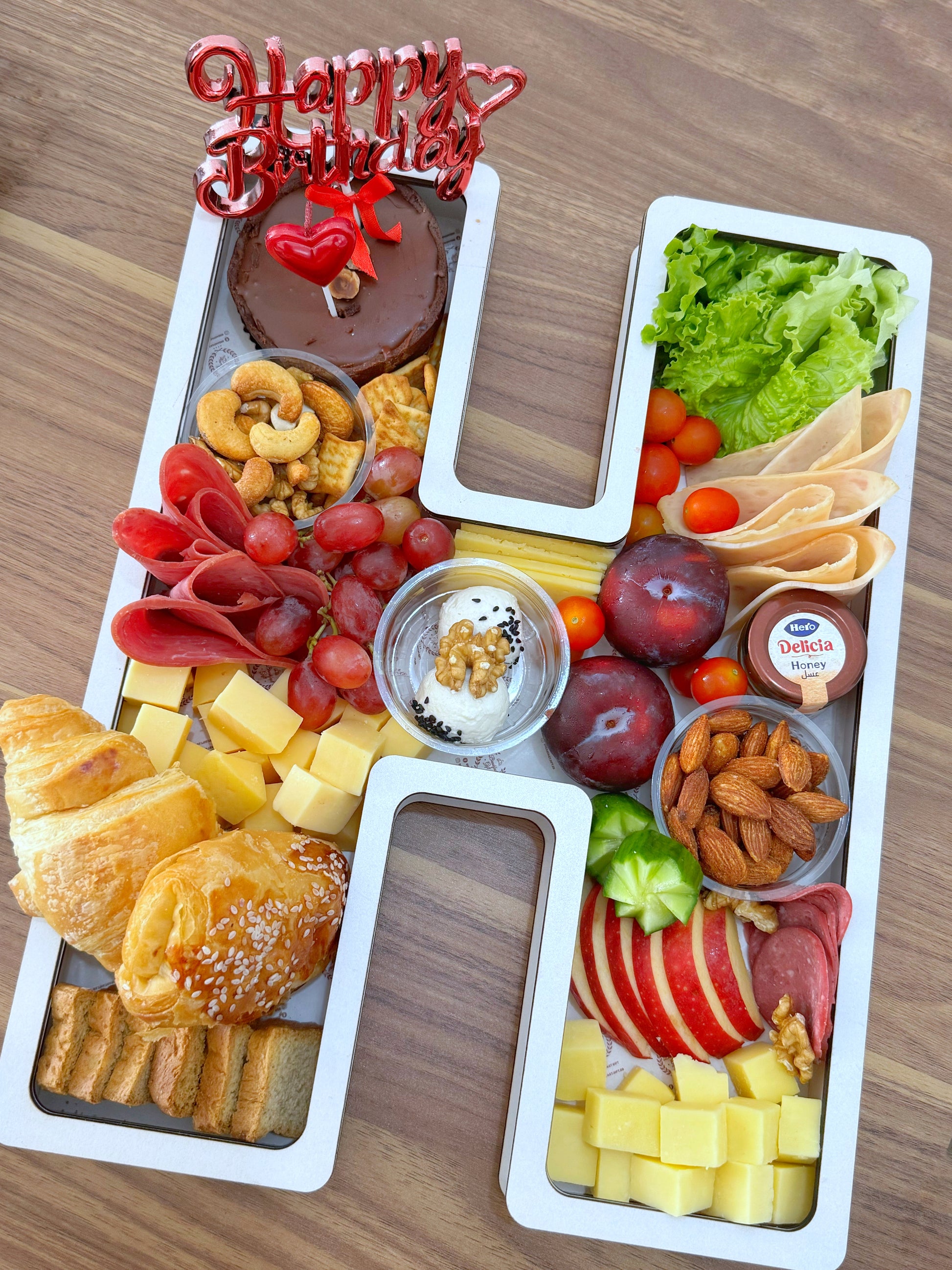 Our Letter Breakfast Box is a unique gift idea that combines delicious treats with a personalized touch. Each box is carefully arranged in the shape of your chosen letter, filled with a mix of freshly baked items, cheeses, cold cuts, fruits, nuts, and sweet bites.